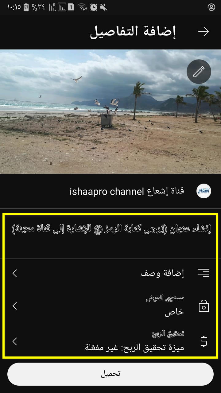 4 - قم بكتابة عنوان للفيديو ووصفا و ستظهر نفس الإعدادات التي تظهر